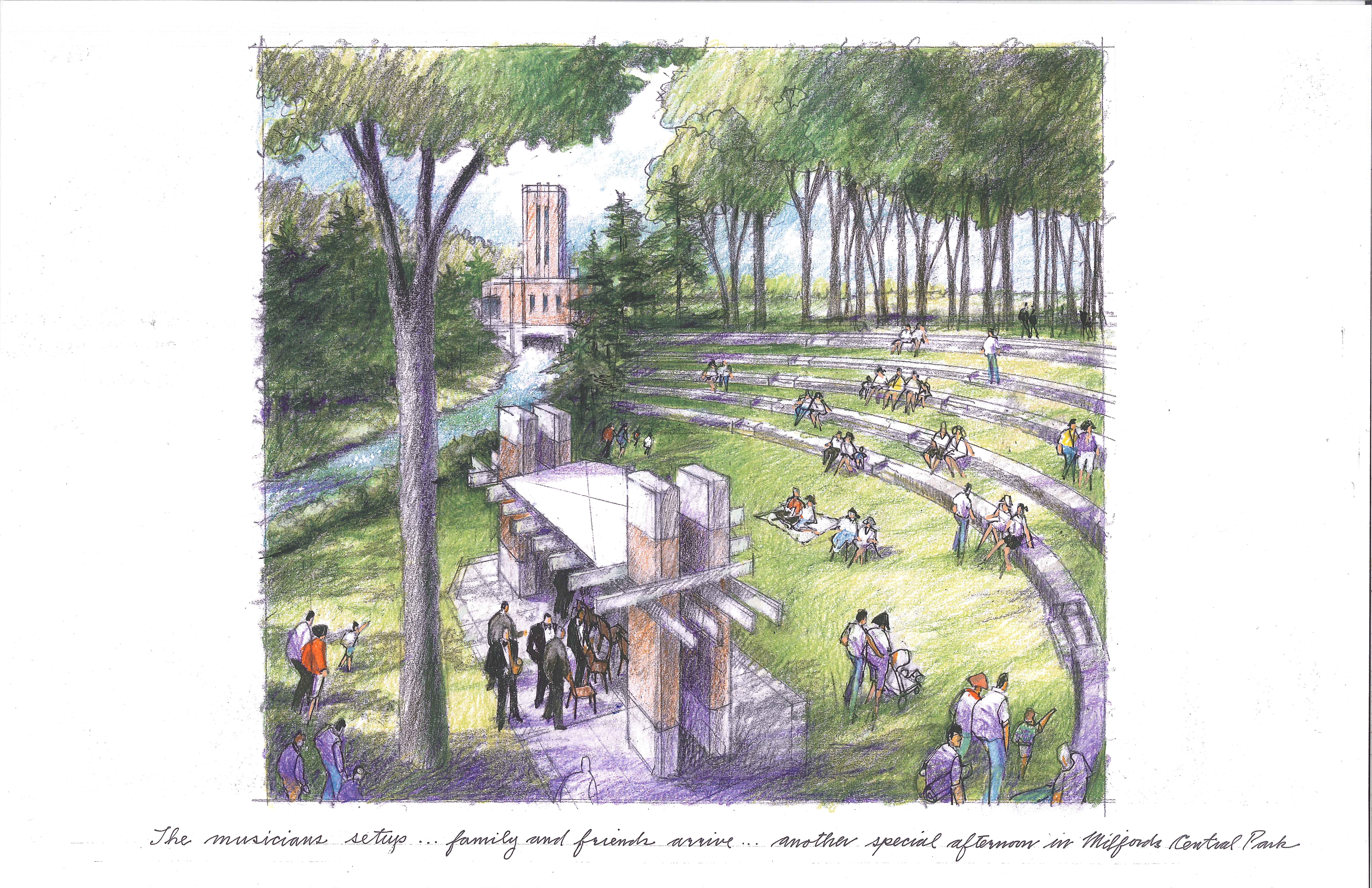 The new stage will accentuate the shape of the land, with curved grass seating in the tree-lined area to “preserve the natural open ambiance of the site,” according to Barnette. She said construction is tentatively set to begin in spring 2014.