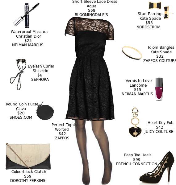3. Stick to dark shades: Lace works best in dark hues, like black. When going out on the town, pick out a gorgeous lacy black dress for a sexy style. Add extra appeal with a pair of peep toe heels. Complete the ensemble with a black and white clutch and adorable bow earrings.
