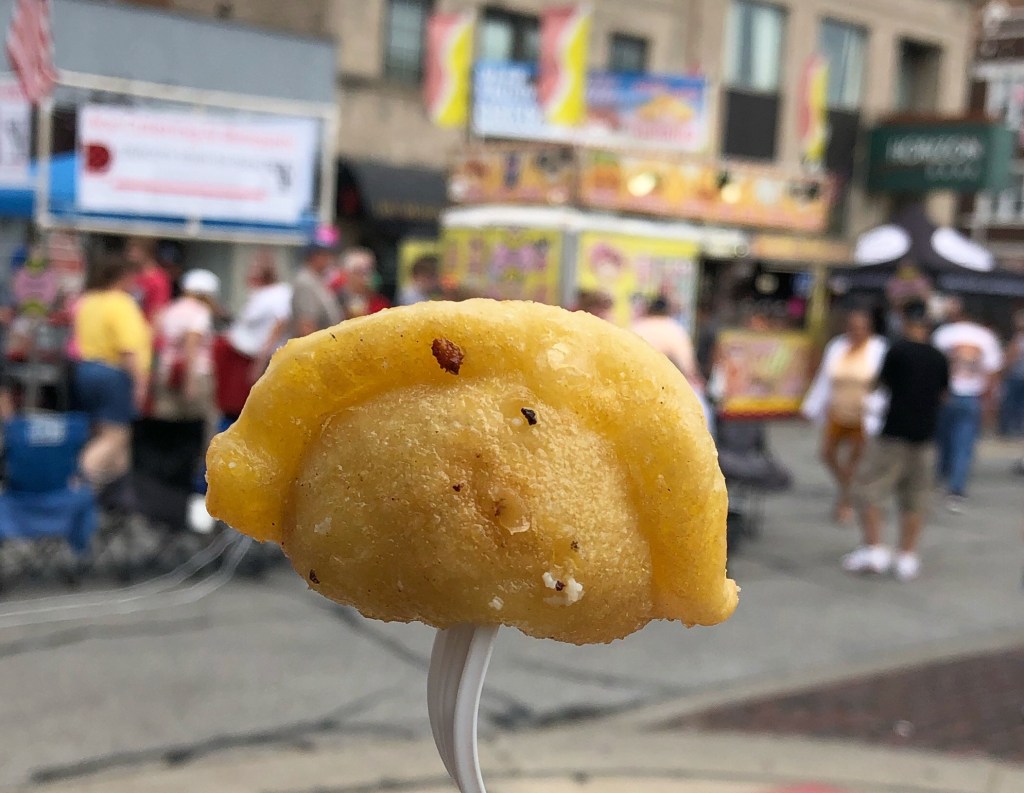 Area supermarkets carry Kasia’s pierogi in the frozen section. The company has one deli in Chicago, where they also do their production. Manager Joanna Jakubowicz, a Chicago native, says they’ve been coming to Pierogi Fest for 20 years. My favorite from Kasia’s was the cheddar jalapeno, a spicy combination of soft potatoes, cheese and peppers, reminiscent of nachos.